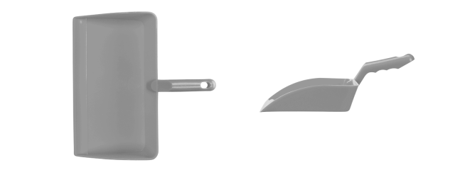 Die Kehrschaufel kann aufgrund ihrer breiten Form mit erhöhten Seiten und einer höheren Rückseite sehr viel Material aufnehmen.